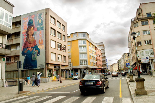 Miguel rematou o mural en Quiroga(Lugo) tras tres días de traballo intensivo. Representa unha lavandeira, criatura mitológica que vivía baixo a auga no río Sil e dedicábase a limpar e puir as pepitas de ouro do río. Aquí deixamos a lenda que dá orixe a estas criaturas: